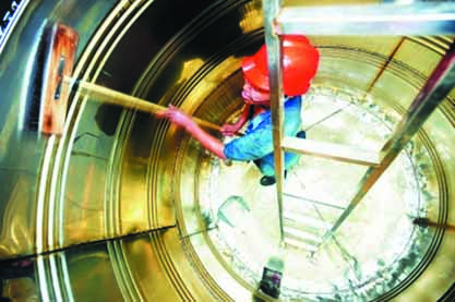 6、水箱清洗人員和檢修人員進(jìn)入池內(nèi)工作。